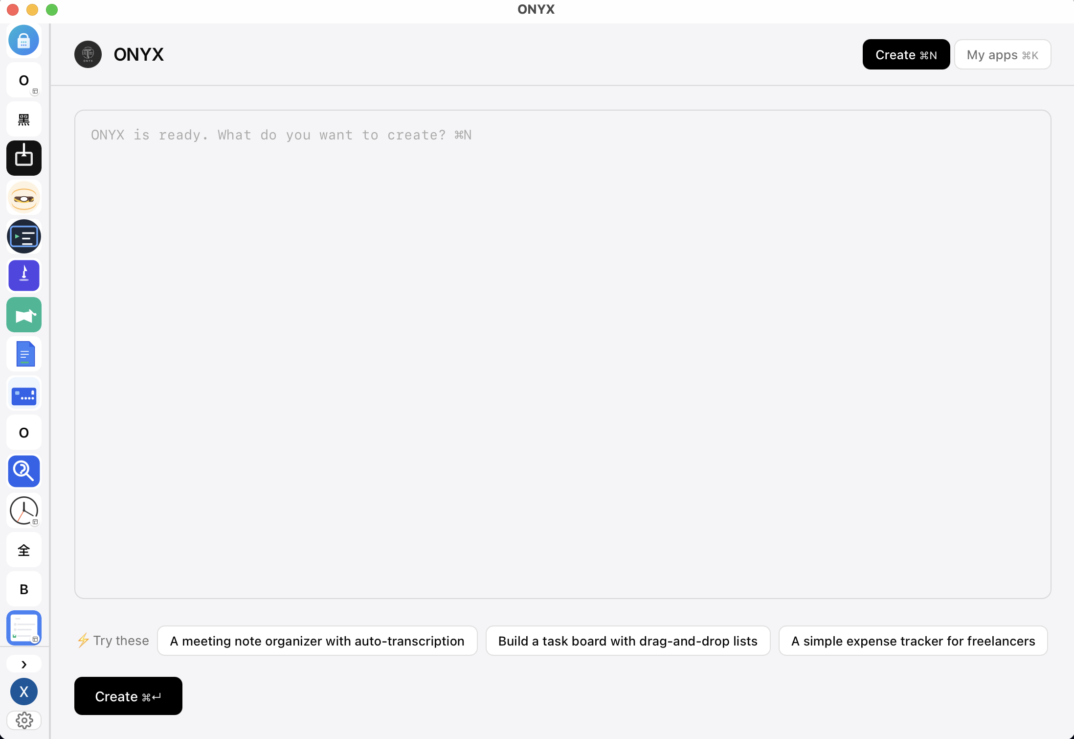 Onyx is now open: describe what you want in plain language, and it creates a local app that runs on your machine. Custom abilities let you control anything your computer can do — no cloud required for the core experience.